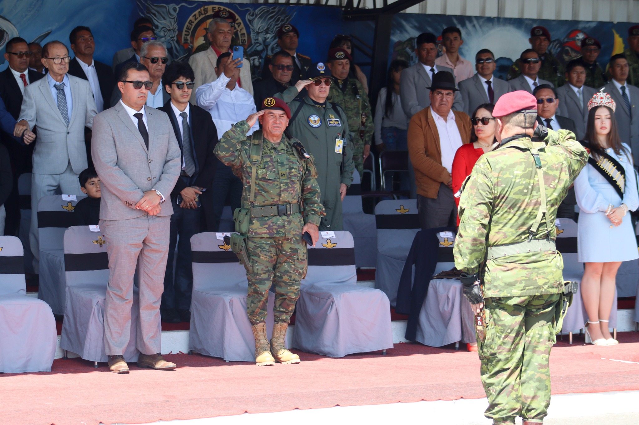 El gobernador de Cotopaxi, Nelson Sanchez Figueroa, junto a autoridades civiles y militares, participó en la Ceremonia Militar de Cambio de Mando de la Brigada de Fuerzas Especiales N°9 “Patria”, entre el Coronel EMC. Patricio Núñez Cruz – Comandante saliente y el Coronel EMC. Diego Villagrán Diaz – Comandante entrante.